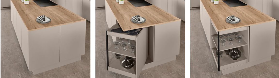 In schmalen Räumen oder Küchennischen sind clevere Stauraumlösungen gefragt, die den Raum optisch öffnen und gleichzeitig funktional nutzen. Diagonalschränke mit abgeschrägtem Korpus leisten genau das: Sie lassen enge Bereiche offener wirken und schaffen visuell mehr Platz.
