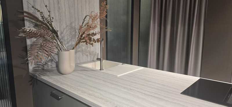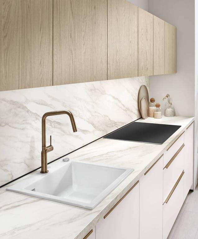 Moderne Wohnlichkeit trifft den aktuellen Zeitgeist. Der warme Erdton Macchiato schafft ein ruhiges, stilvolles Ambiente und spricht besonders designaffine Kunden an. In Kombination mit einem hellen Holzdekor entsteht ein hochwertiger Look, der sich ideal für anspruchsvolle Küchen- und Wohnkonzepte eignet.